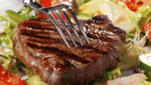 - 翻面时,用锅铲轻轻拍打牛排,使其均匀受热。